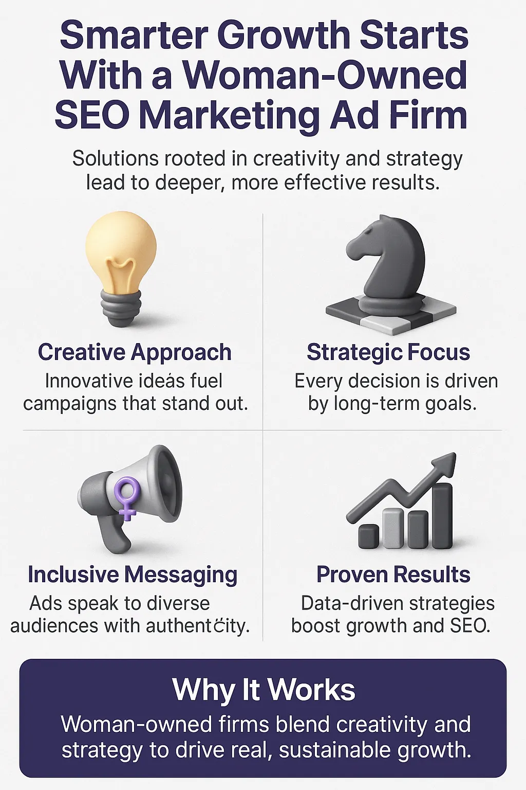 If you’re looking for an SEO marketing partner that brings both expertise and authenticity, this page shows why smarter growth starts with a woman-owned SEO marketing ad firm built on creativity, strategy, and results.
